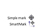 A SmartMark is an intelligent mark that positions and resizes itself in relation to the object to which you anchor it: the substrate, film, plate, or die. If you replace the substrate, the mark repositions itself automatically. You can reposition a SmartMark by editing settings in the Mark Settings dialog box, or you can create multiple copies of a mark in the dialog box and specify the position of each one. These marks contain information that the software uses to define their appearance. After you place a SmartMark in a job, you can unlock it and reposition it, but the mark may no longer be considered "smart." It becomes "smart" again when you lock it. You can make SmartMarks appear above or below other objects on the layout.