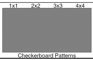 The upper half of the Visual Checkerboard contains 1x1, 2x2, 3x3, and 4x4 pixel blocks. The lower half contains more coarse 10x10 pixel blocks.