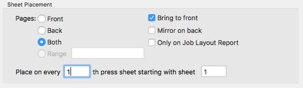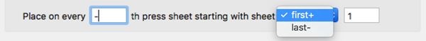 If you replace the numerical value for Place on every with a minus sign (-), the sheet value box is preceded by a menu where you can select first+ or last-. This allows you to target a specified press run after the first sheet or before the last sheet.
