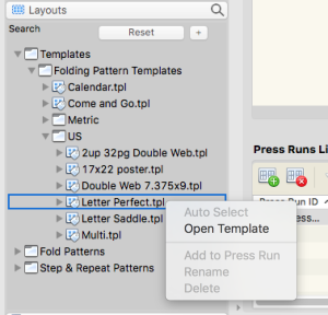 - From the Layouts pane, right-click an existing template.