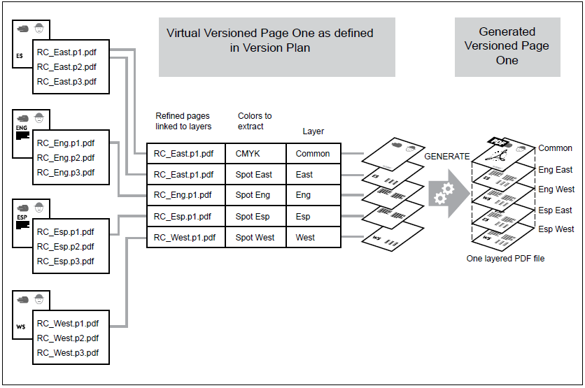 For the remaining versioned content, you can link the refined files by layer or versioned pages. After linking, generate the versioned pages, and the versioned pages are ready to proof.