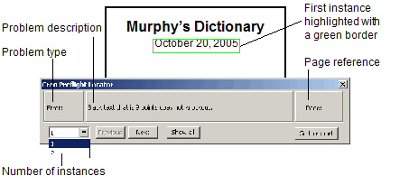 2. To highlight another instance of this problem, select a number from the list, or click Previous or Next. To highlight all instances of the problem at the same time, click Show all.