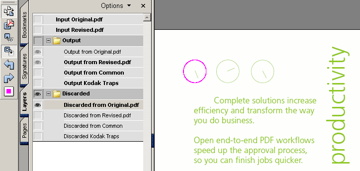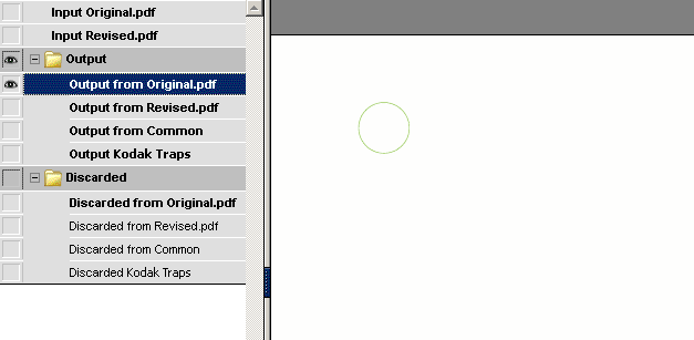 For example, the two figures that follow show the selected object removed from the Discarded from <originalfile>.pdf sublayer, and retrieved to the Output from <originalfile>.pdf sublayer.