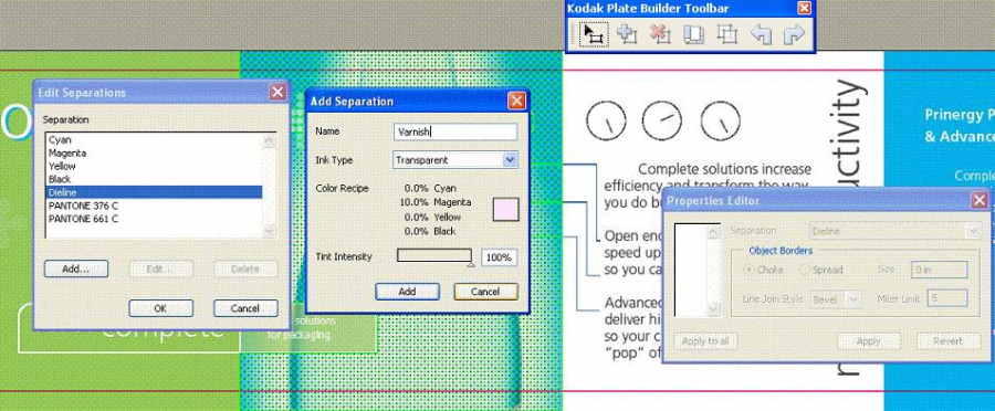 This is an example of a typical Plate Builder workflow for adding a varnish plate.