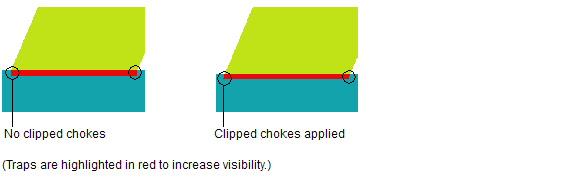 6. Check Clipped Chokes to angle the ends of a choked trap located where at least three colors meet. The line of the trap continues the line of the object. In case of a misregistration, the angled contour is less noticeable.