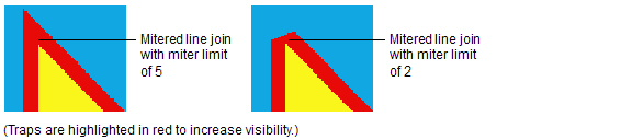 The Miter Limit shortens the mitered trap to a bevel according to the angle of the join—for example, the more acute the angle of the join, the more beveled the mitered trap.