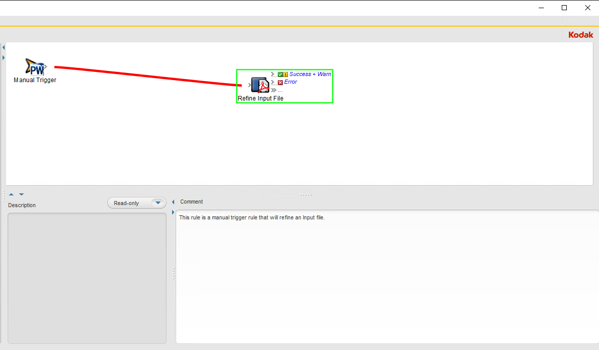 As of Prinergy 10.0 users can now attach comments to Actions within a Rule Set, for example: