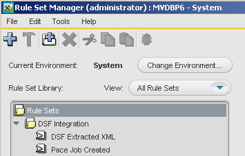 . This job will be used to host a hot folder that processes an XML file that will be extracted from the JDF file. - From Workshop, open Rule Set Manager.