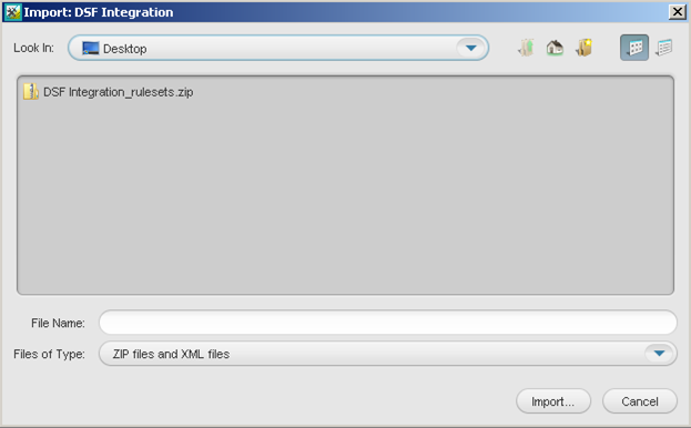 - In Rule Set Manager, from the File menu, select Import, browse to the