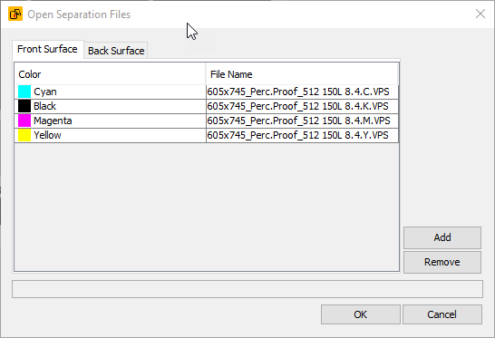- Select the files you want to add and click Open. You will be able to view the added file names added to each surface.