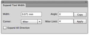 - Wählen Sie in der Illustrator-Menüleiste im Menü Fenster die Option Prinergy Tools > Werkzeug > Textbreite erweitern aus.