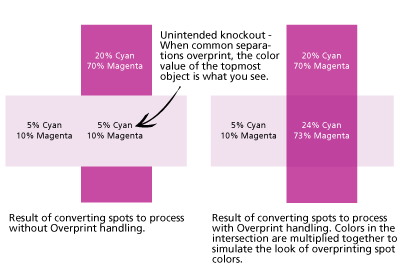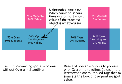 Overprint handling is a feature in the ColorConvert section of the process template that helps to prevent overprinting objects from generating unintended knockouts. You can apply overprint handling in the refine, loose page output, and imposition output process templates.