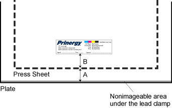 In either case, if you are placing a sheet mark on the top or bottom edges, the distance (A) must include the size of the nonimageable area under the lead or tail clamp.