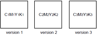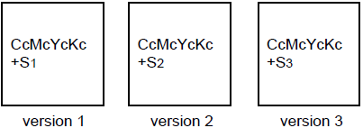 For all versions, provide a single input file that contains base and change content, where each version's content is defined with a different spot color.