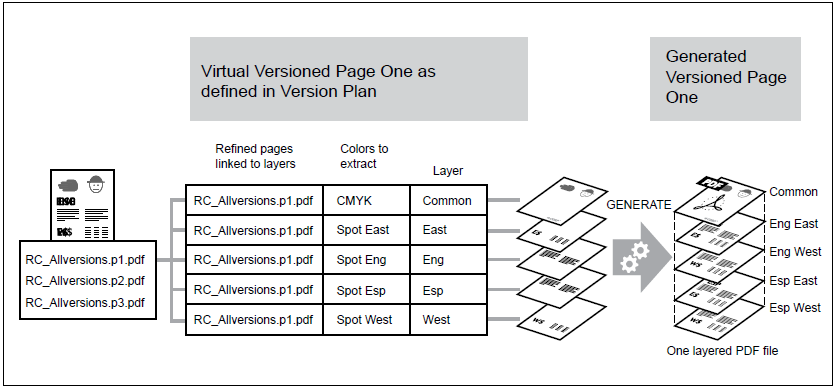 Using model 3, all base and change content for a versioned page are in one refined page. Therefore, link the refined pages to all layers including the common layer because a refined page contributes to all layers.
