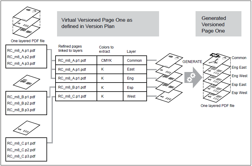Link all contributing refined pages to the appropriate layer. You can link the refined files by layer or versioned pages. After linking, generate the versioned pages, and the versioned pages are ready to proof.