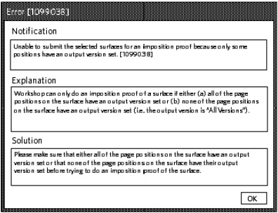 Important: If you try to output a surface in which the pages are a mix of 'all versions' and specific versions, an error message appears: