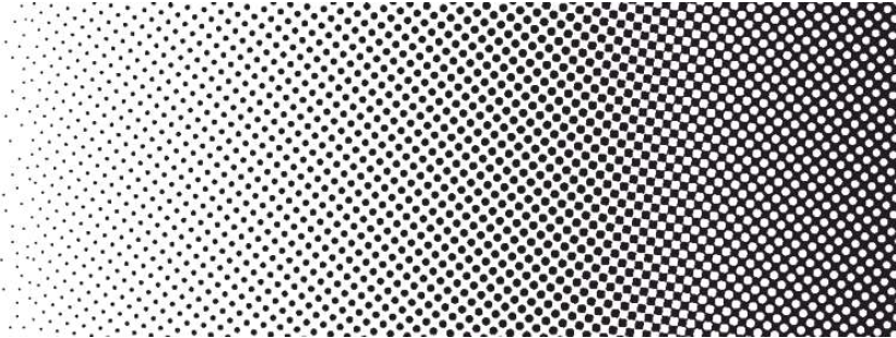 The dots in Maxtone IS CX are arranged on the same screen-ruling grid as Maxtone screens, and tonality in the midtones is controlled by adjusting the size of the dots. However, for Maxtone IS CX, tonality in the highlights and shadows is controlled by fixing the dot width and varying the number or frequency of dots placed on the grid.