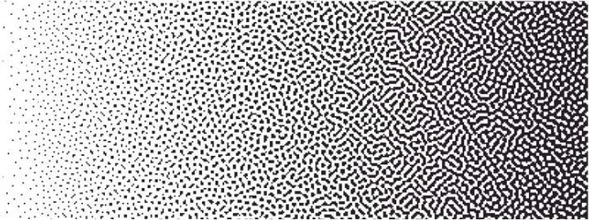 To control the width of the area rendered with FM dots of the minimum size, you configure the minimum dot size (from 1×2 to 4×4 pixels). The minimum dot size and screen ruling are independent of each other.