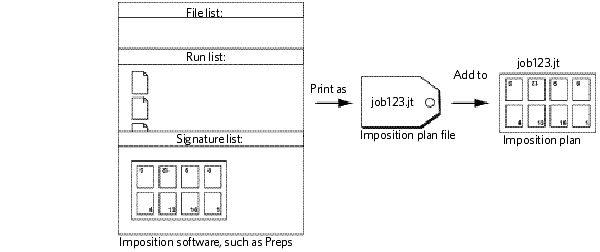 The imposition appears in Workshop. If pages were assigned in the Preps job ticket, the Run List column in Workshop displays the Preps run list and this information is mapped to the page set position in Prinergy.