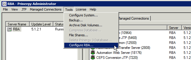 - Select Tools > Configure RBA.