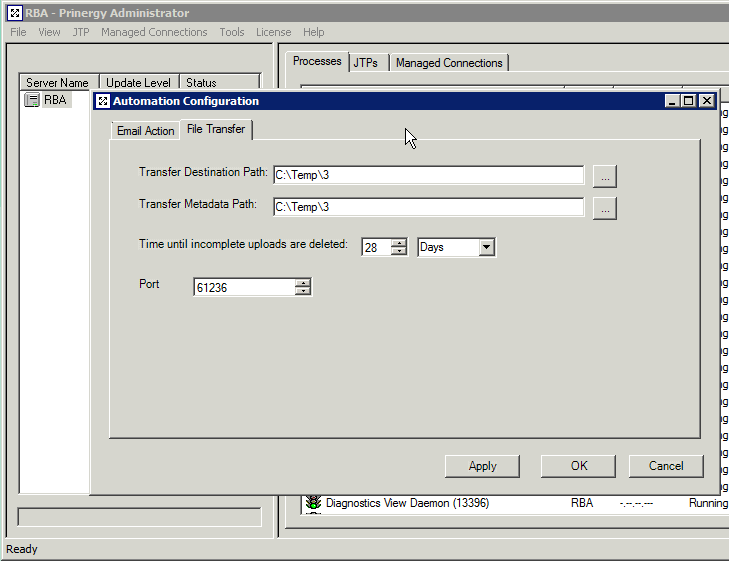 The Automation Configuration dialog is displayed. - Select the File Transfer tab.