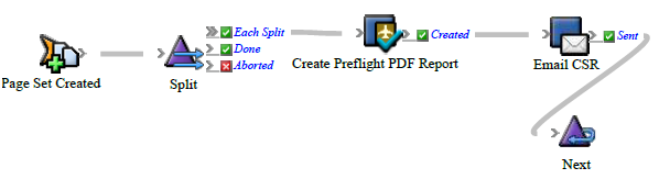 Create a rule that uses the Split action to prepare PDF preflight reports on individual pages and send an e-mail message to the CSR when each report is ready.