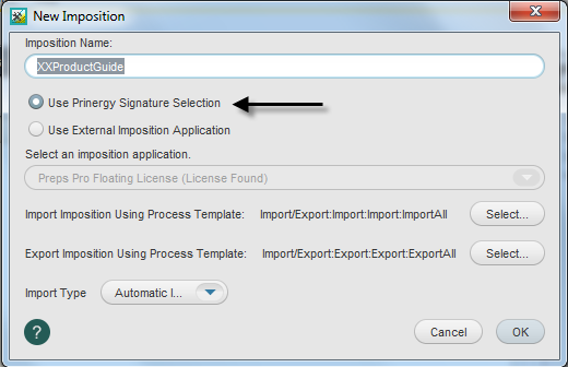 XXProductGuide(where <XX> represents your initials). - Select the Use Prinergy Signature Selection option.