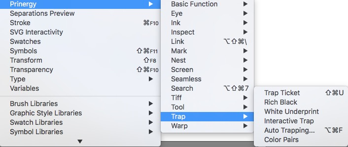 - In the Adobe Illustrator menu bar, go to the Window menu, and select Prinergy > Trap > Auto Trapping.