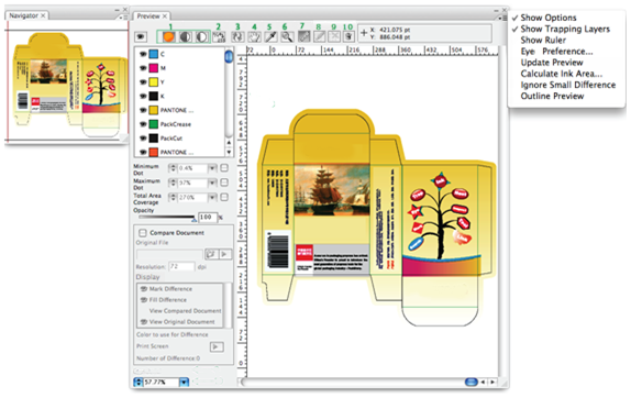 The icon on the left side of each ink in the color list toggles between display and hide, to control the preview of each color. Clicking the icon above the color list allows you to toggle between display or hide for all the colors.