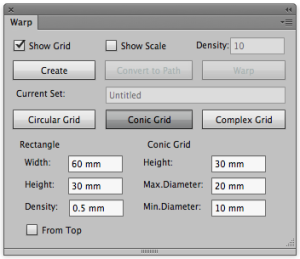 - In the Illustrator menu bar, go to the Window menu, select Prinergy > Warp > Warp, and then select Conic Grid in the dialog box that appears.