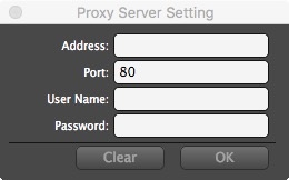 Dirección La dirección del servidor proxy Puerto El puerto del servidor proxy Nombre de usuario (Opcional) El nombre de usuario del servidor proxy Contraseña (Opcional) La contraseña de usuario del servidor proxy