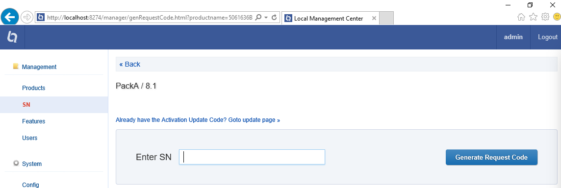 - Cuando se le notifique que hay una actualización de la clave de licencia, acceda a http://localhost:8274 y haga clic en Actualizar para actualizar la clave de licencia.