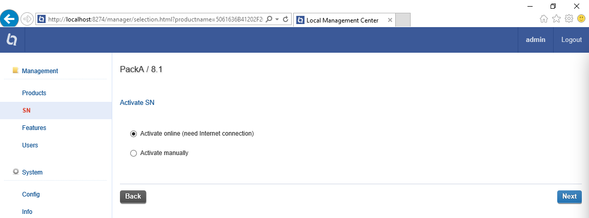 - Seleccione Activar en línea (se necesita conexión a Internet) y haga clic en Siguiente.