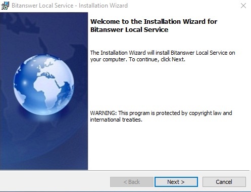 bit_service.exey siga haciendo clic en Siguiente hasta que se complete la instalación. - Cuando se complete la instalación, busque el Servicio local en el menú Inicio o escribiendo http://localhost:8274 en el navegador de Internet.