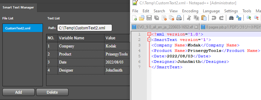 Smart Text mark supports to use XML file add customized text. XML file must contain <SmartText version='1'>, please refer to the sample of customized text mark on the right side of the screenshot.