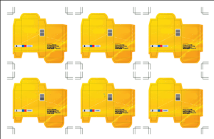 Trim mark For marking cutline By adding this mark to sheets and plates, you can add the trim marks to each stepped box or label. |