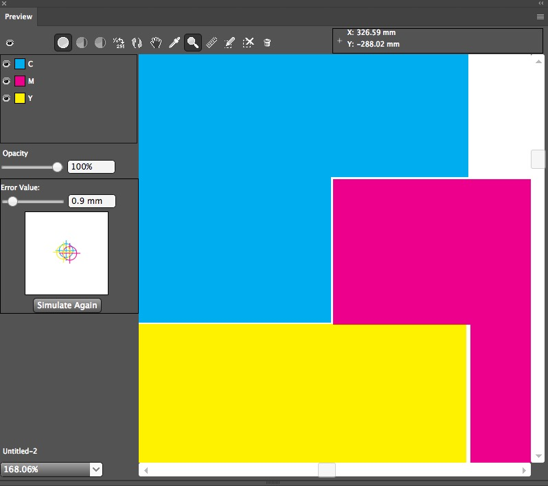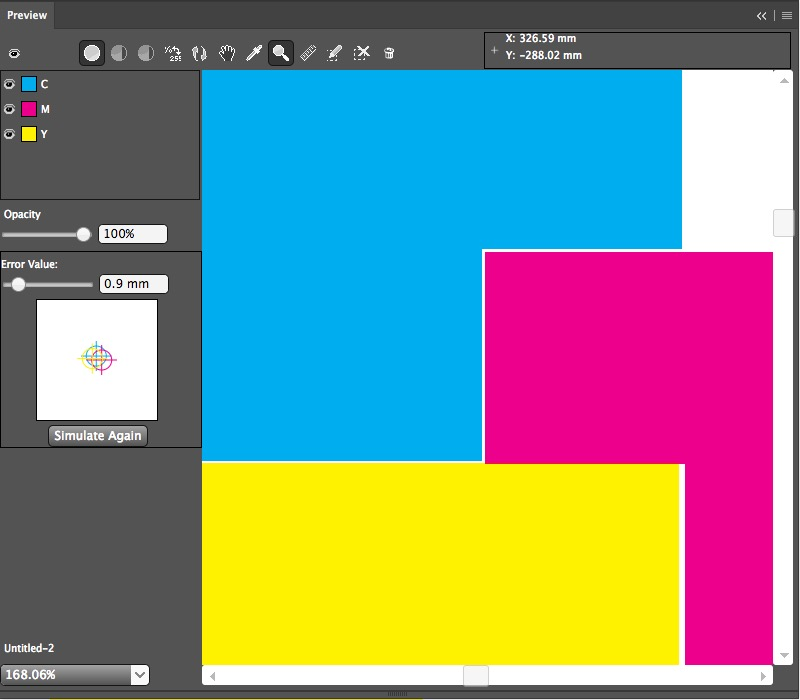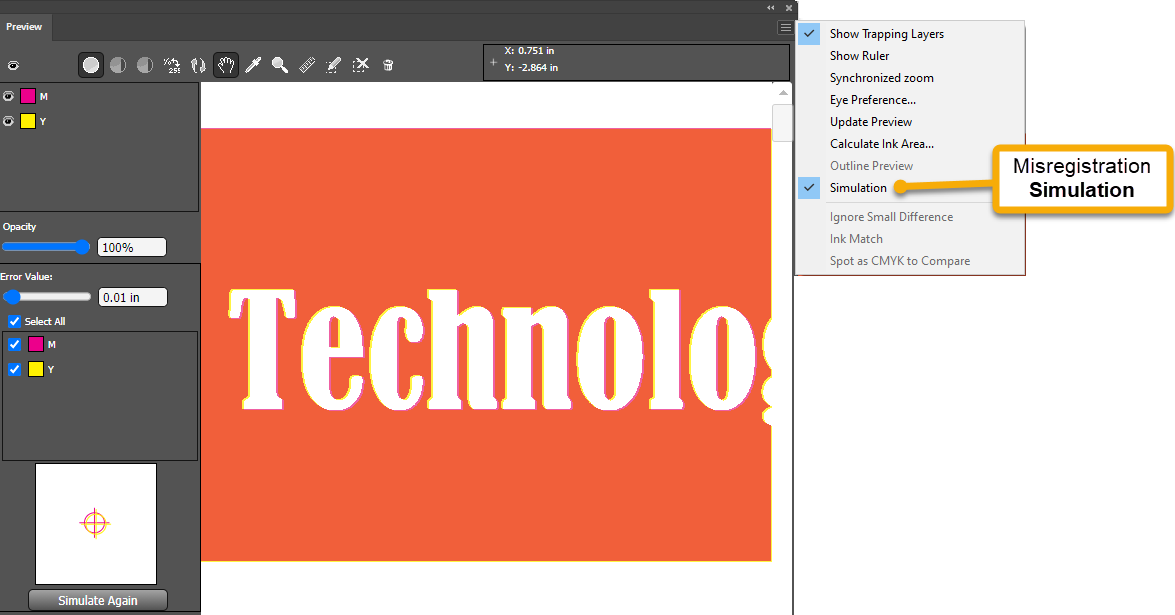 - From the right-side Options menu of Preview, select (Misregistration) Simulation