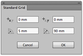 In the Illustrator menu bar, go to the Window menu, select Prinergy > Warp > Circular Standard Grid. The Standard Grid dialog box appears, displaying the following parameters: