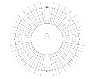 Set the X-position for center of circle. Set the Y-position for center of circle. Set the distance between inner arc and center of circle. Set the distance between outer are and center of circle. - To confirm the settings and create the standard grid, click OK.