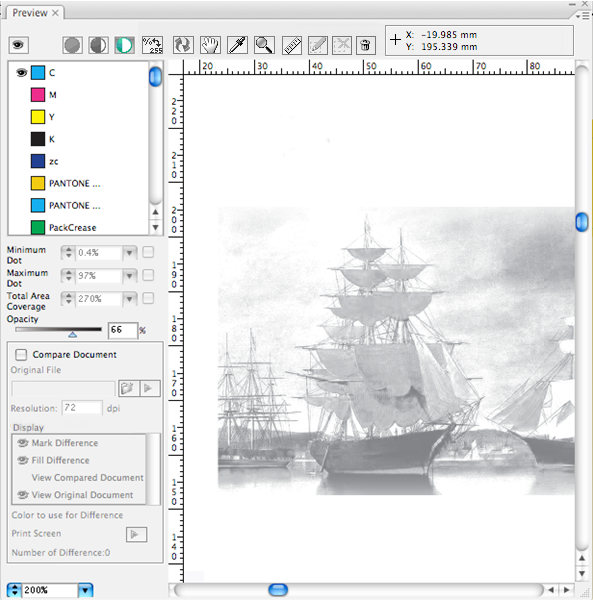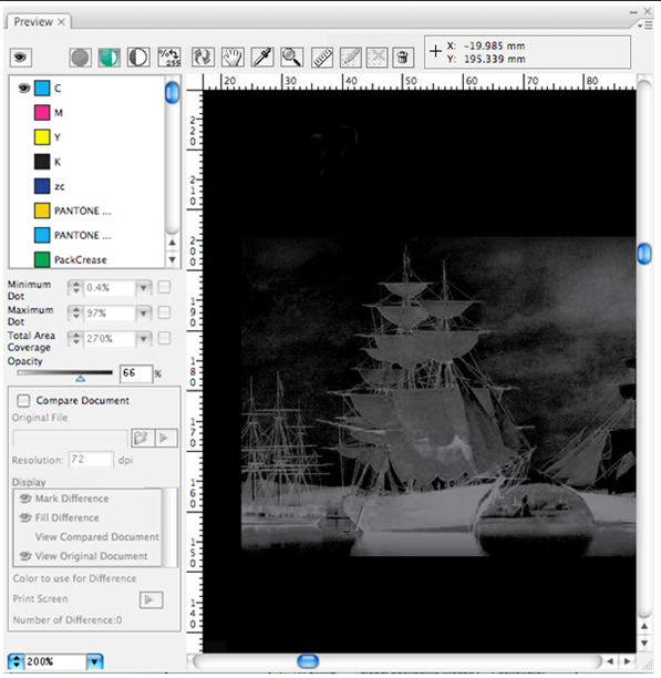 When using the Eyedropper Tool  to preview one point within the preview window, the color ink component of this point will show as the corresponding ink in the color bar list.