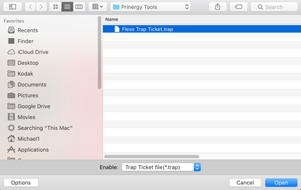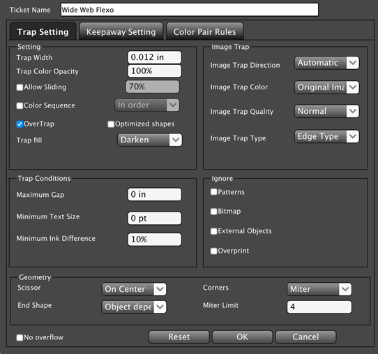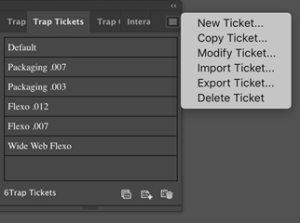 - New Ticket: Prinergy Tools creates a new trap ticket based on the default template. Edit as needed to create a new ticket.