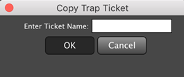 - Copy Ticket: When you select an existing ticket and then select this option, a dialog box appears. When you enter a trap ticket name and click OK, the system creates a copy of the ticket with the new name.